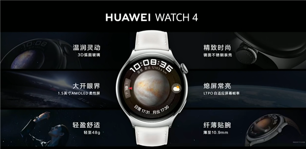 作为业界首款星球系列智能手表,华为Watch 4系列将星系藏于腕间并以星球命名,分别为蔚蓝地球(Pro)、木星棕(Pro)、火星钛(Pro)、金星白、土星褐、幻月黑。